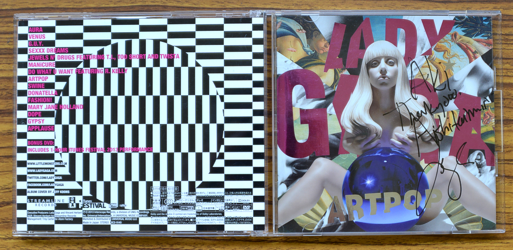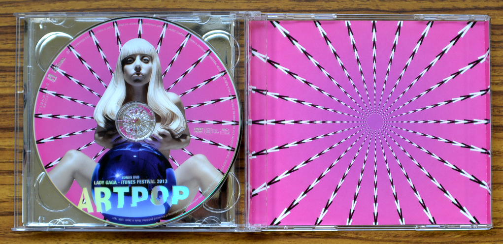 The inside of Lady Gagafs fourth CD album ARTPOP designed by Jeff Koons.
