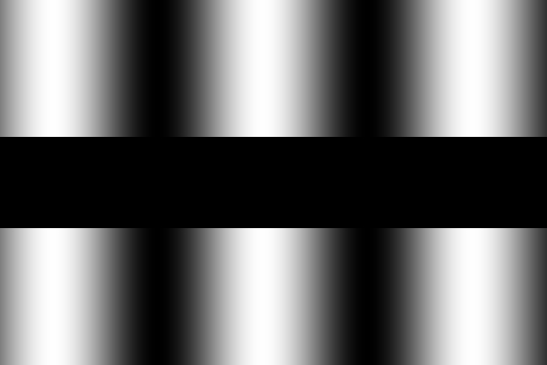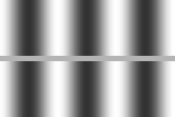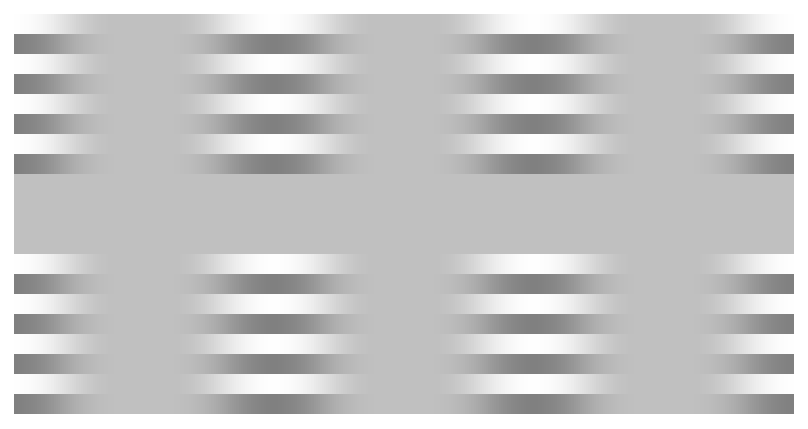 Three columns of illusory mist (visual phantoms) appear to bridge the upper and lower parts over a homogeneous gray field. Regions of low-contrast tend to form visual phantoms.