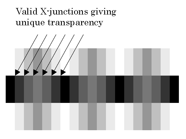 Our claim: The characteristics1) of visual phantoms can be explained with perceptual transparency2) that is cooperatively formed by the inducing gratings and induced ones in the occluder.