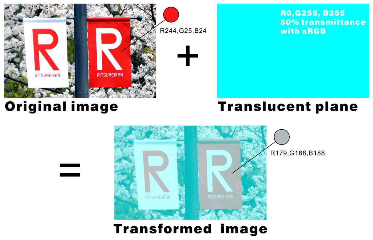 Kitaoka, A. (2011). A variety of color illusion: (2) Color constancy and two types of color filters. Journal of Color Science Association of Japan, 35(3), 234-236 (in Japanese).