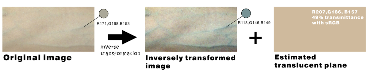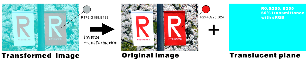 These color changes can be inversely transformed by the algorithm that Kitaoka developed (to be reported elsewhere). It is suggested that the visual system be also equipped with this algorithm to realize color constancy.
