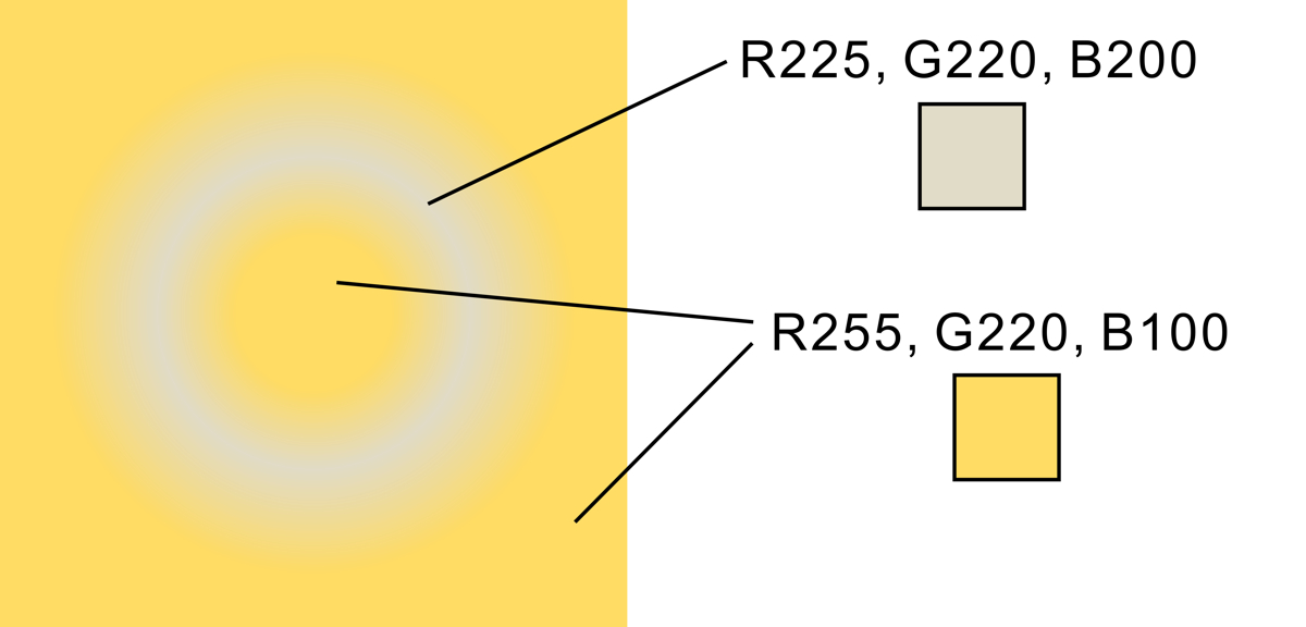 The ring of each image appears to be bluish, though it actually is not. The left image consists of yellowish pixels and the right one is made up of red pixels.