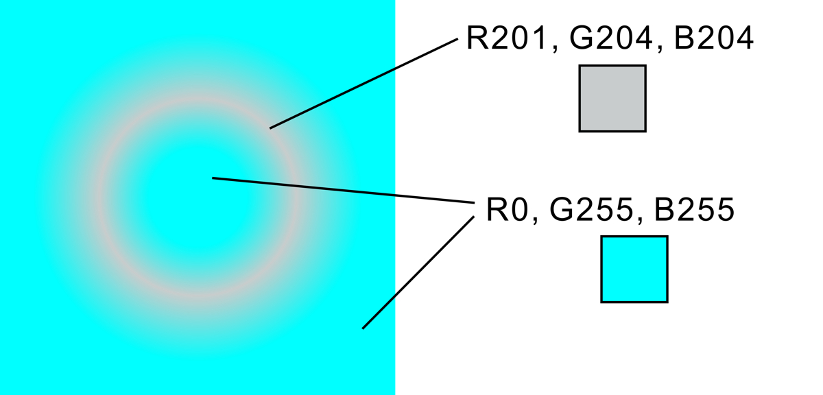 The ring of the left image appears to be reddish, though it consists of cyan (greenish blue) pixels.