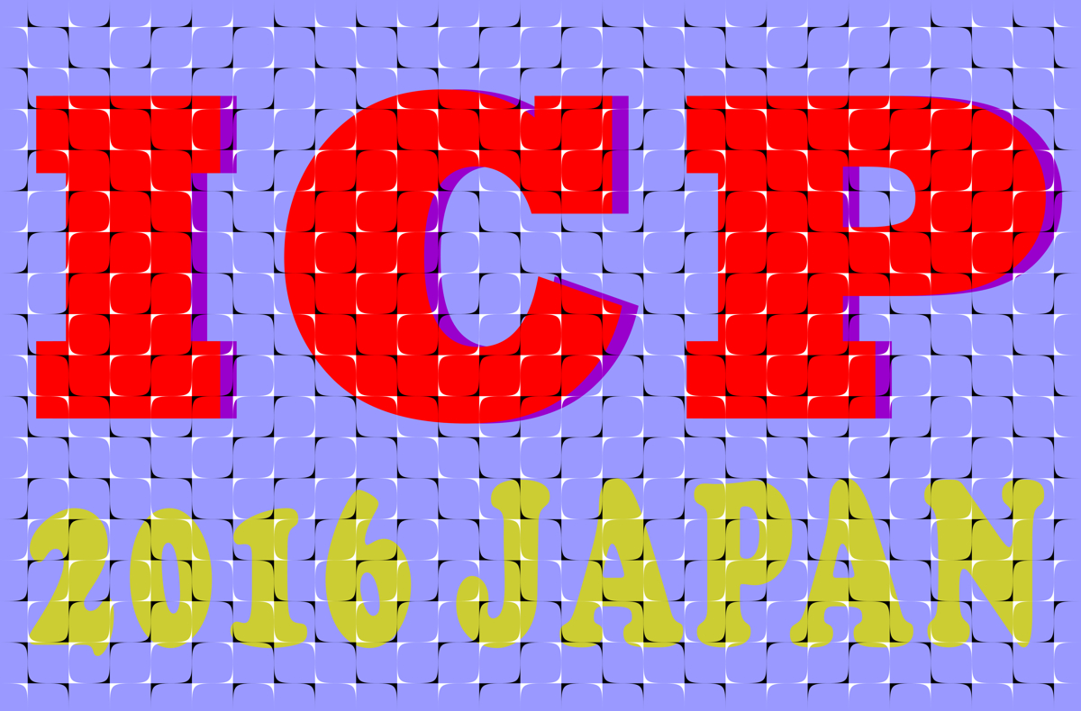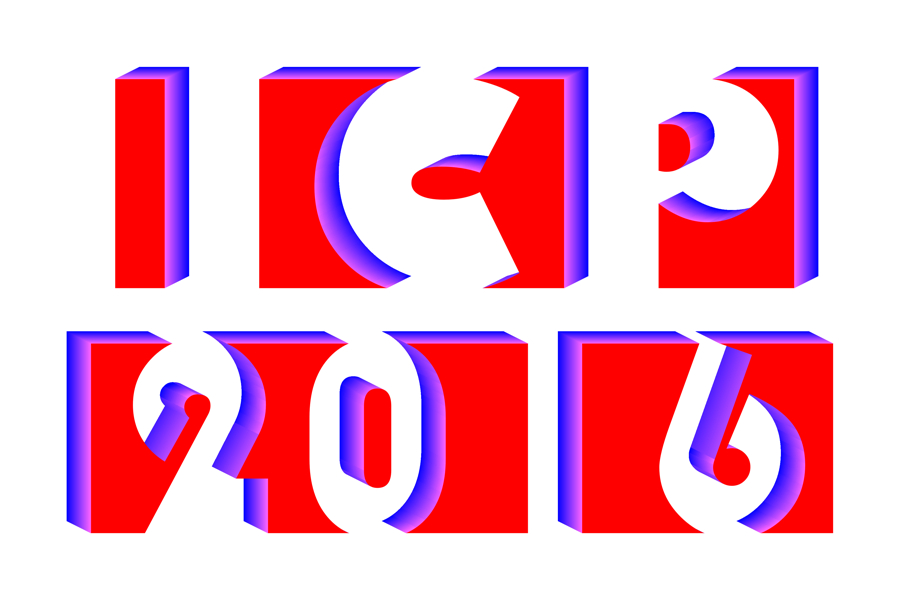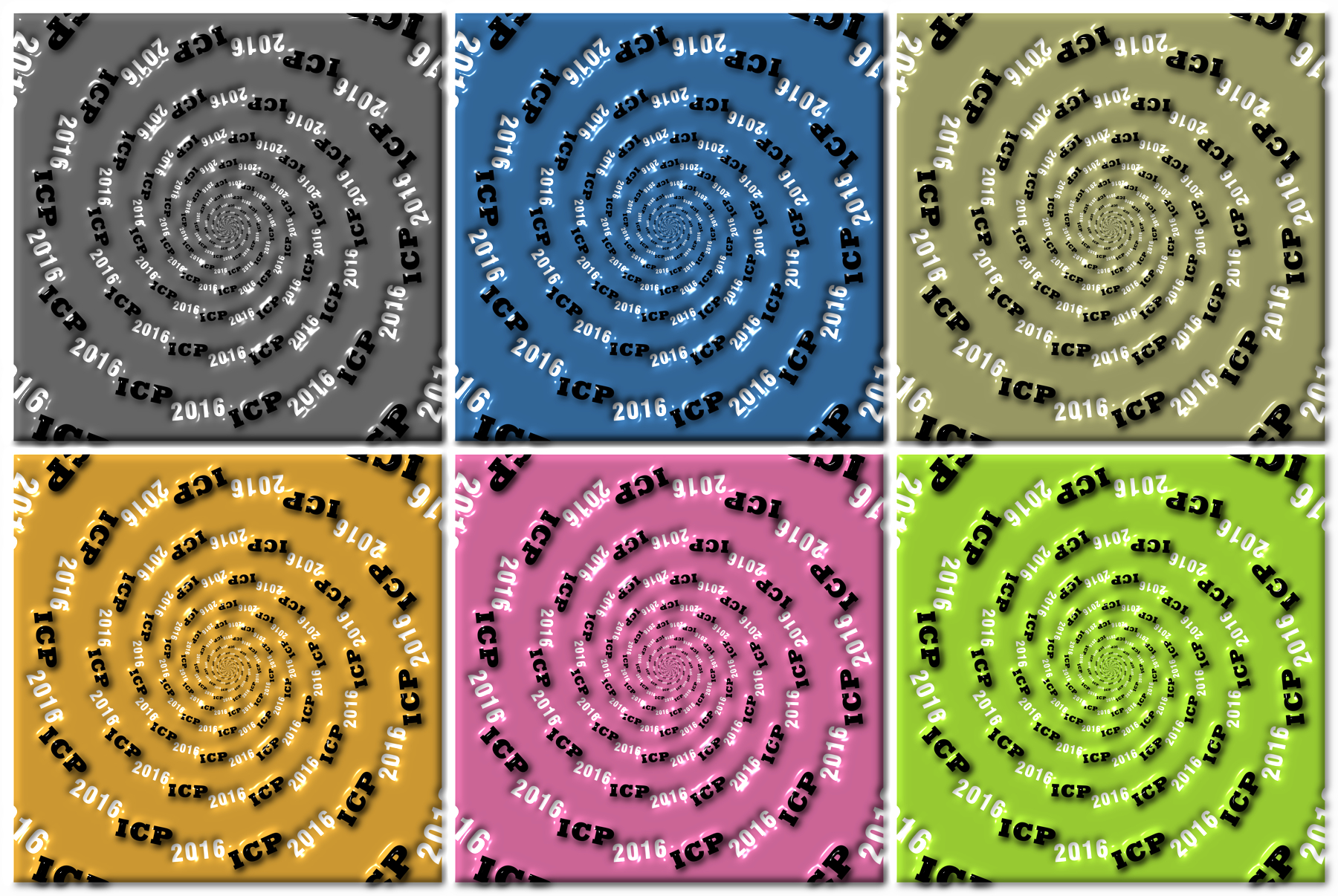 Concentric rings of words 'ICP 2016' appear to be spirals.