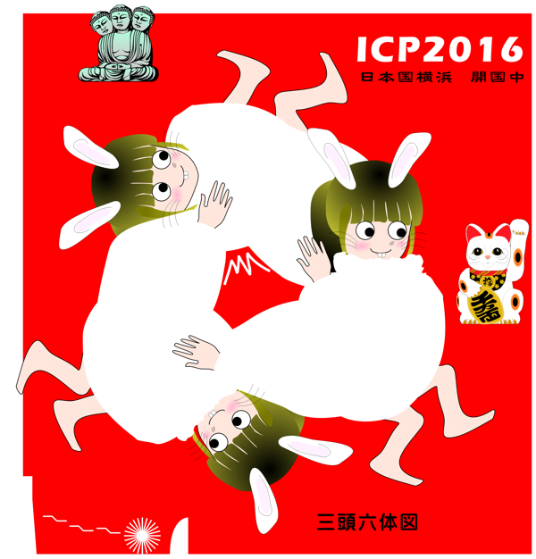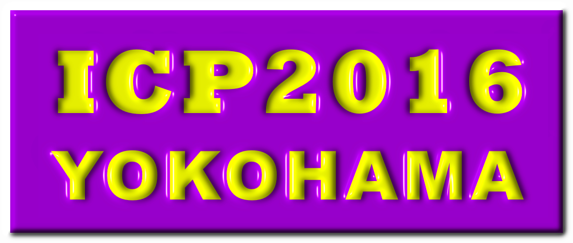 'ICP2016' appears to slide leftward while 'YOKOHAMA' rightward.