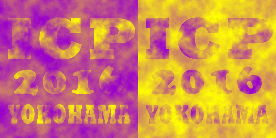 'ICP 2016 YOKOHAMA' in the left image appears to be yellowish while that in the right one appears to be basically purple, though they are just the same texture and color.