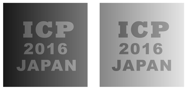 The left 'ICP 2016 JAPAN' appears to be lighter than the right counterpart, though they are the same luminance gradient.