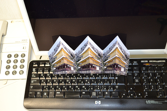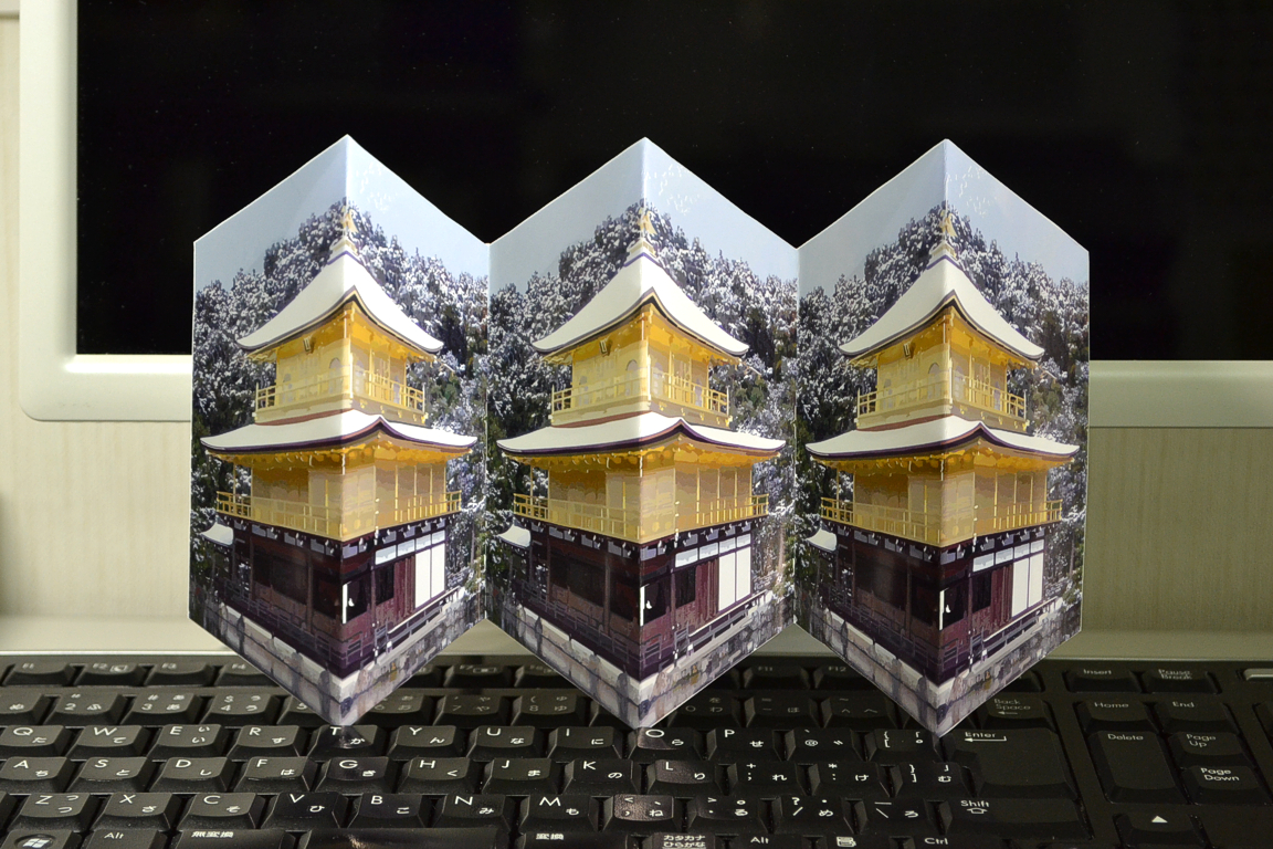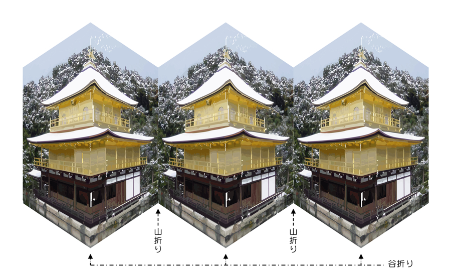 もちろん金閣は谷折り。しかし、この方向から見ても何か変に見える。