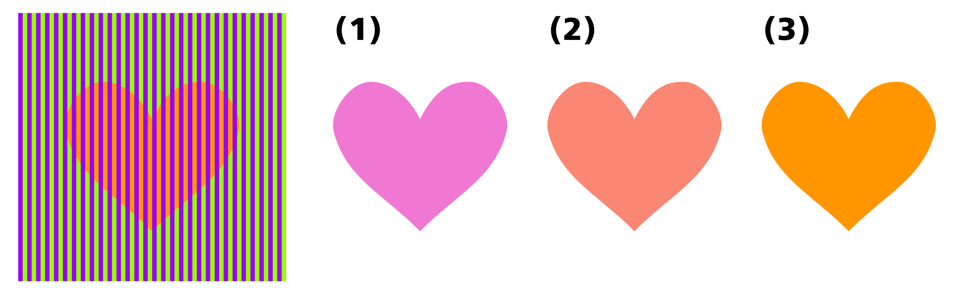 問: 下記のような色から、オレンジ色と赤紫色を同時に作る方法はあるか?