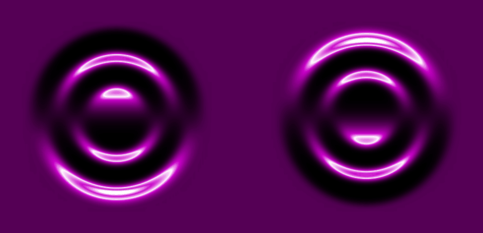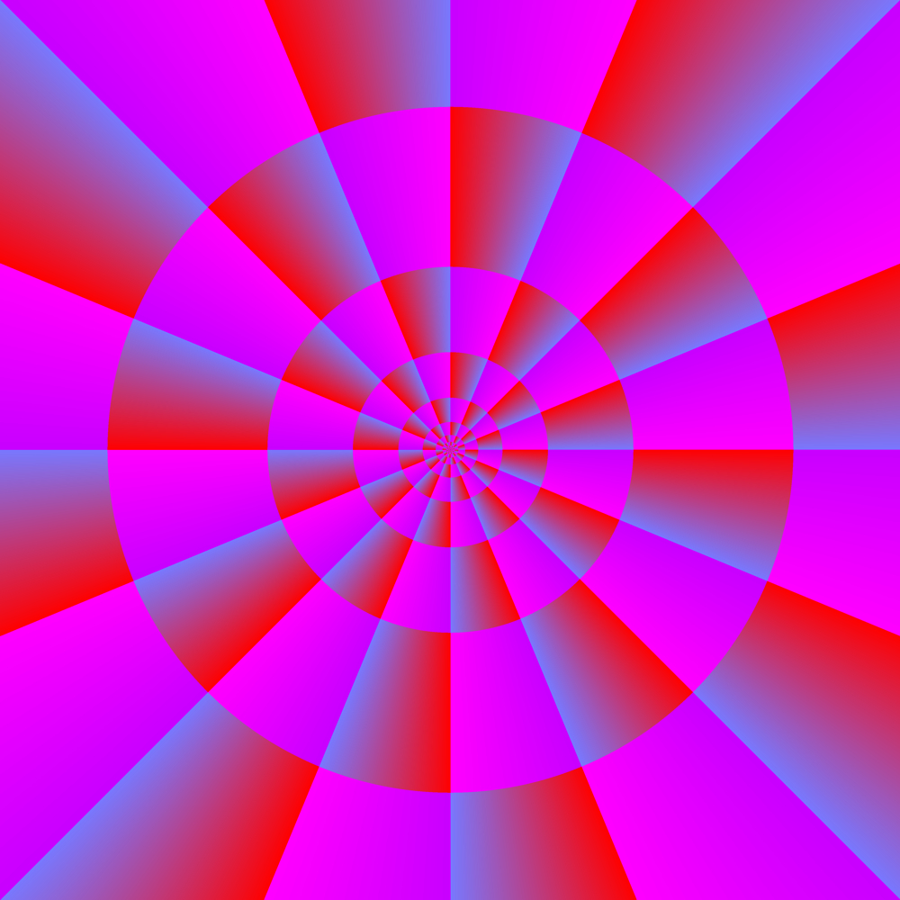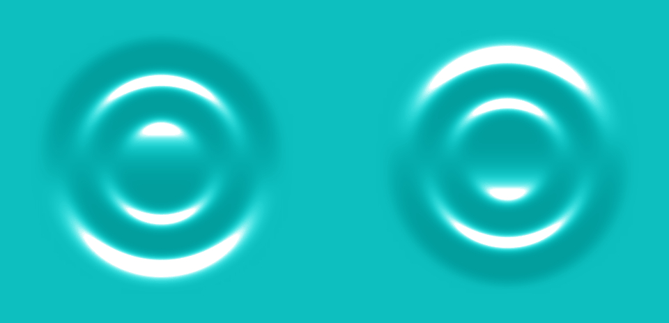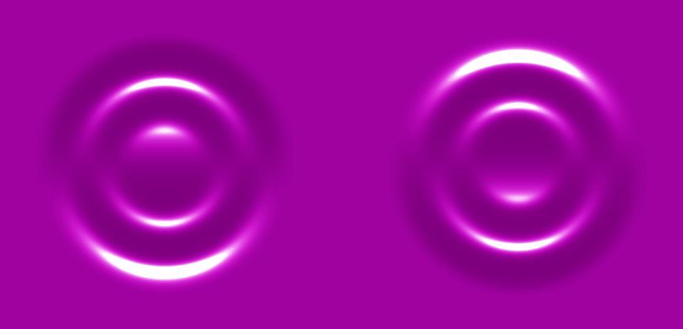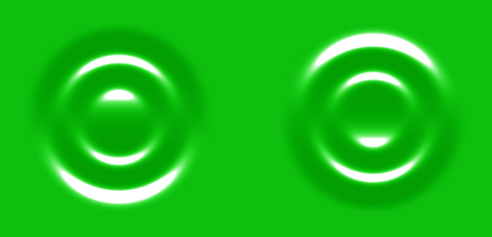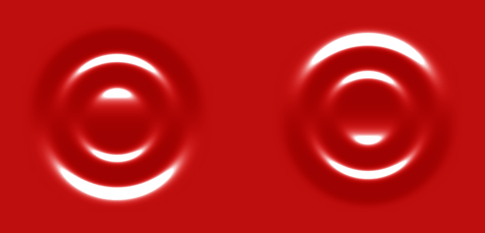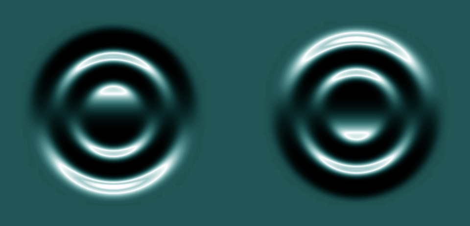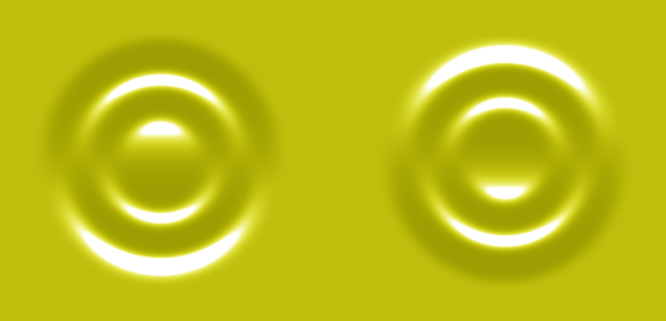 この動画の真ん中をしばらく見て、別のところに目を移すと、視野が波打って見える。この動画は下記の図形を回転させたものであるから、下記の図形を印刷して切り取って、真ん中に棒を通して回しても同じ効果が得られる。リング部分が図となって(手前に見えるオブジェクトとなって)手前に近寄ってくるように見える場合と、リング部分は地となって、図となった内 側と外側が奥に遠ざかるように見える場合とか交替する。