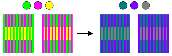 北岡明佳 (2012) 色の錯視いろいろ (6) 「図地分離による錯視」 日本色彩学会誌, 36(3), 237-238.