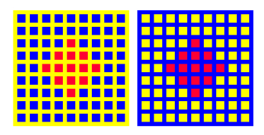 円内は左右で同じパターンであるが、左は満月に見え、右は夕日に見える。