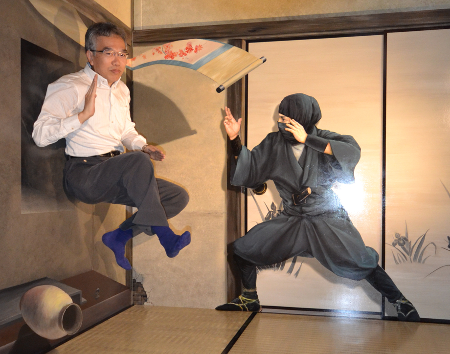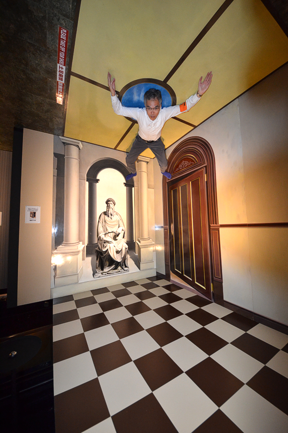 トリックアート美術館にはエイムズの部屋もある。この写真は、高尾山トリックアート美術館(東京都八王子市)にて撮影(2012年5月7日)。