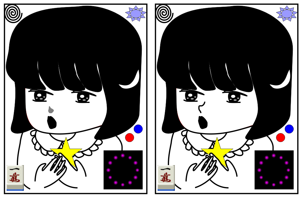 2枚の画像が切り替わるたびに、1箇所だけ変化する。