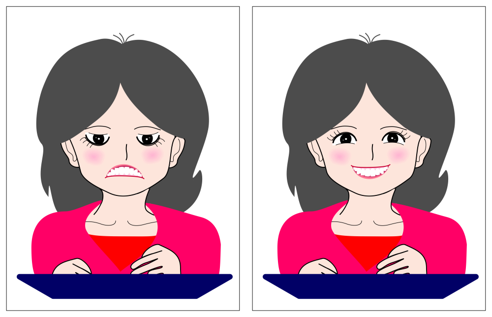 モナリザの目の上に白いアイシャドーを付けると機嫌がよく見え、目の下に付けると不機嫌に見える。