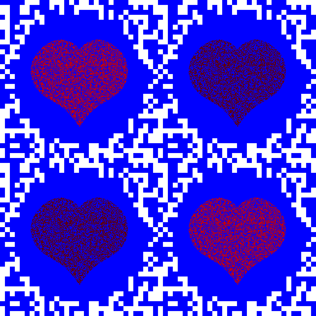 ハートが動いて見える。めがねをかけている人は、めがねを動かすとよく見える。