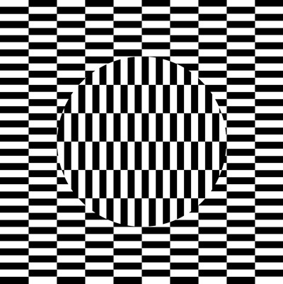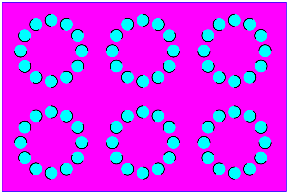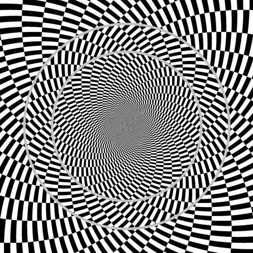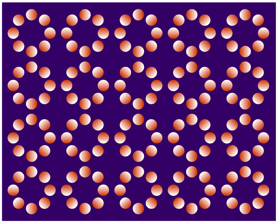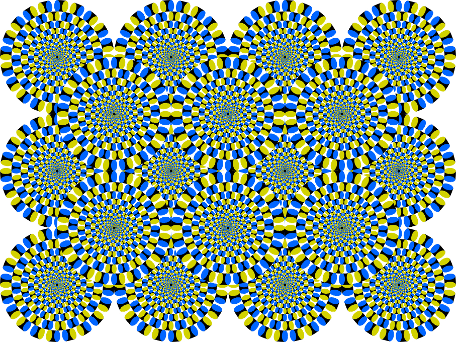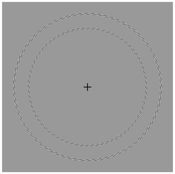 Rings appear to rotate when observers look close or move apart from the image keeping the eyes fixed in the center.