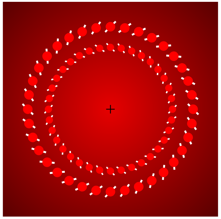 The outer ring of rays appears to rotate clockwise while the inner one counterclockwise.