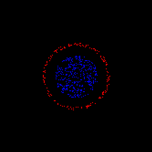 For more than half people, the red ring appears to be in front of the blue "earth". In addition, they appear to move.