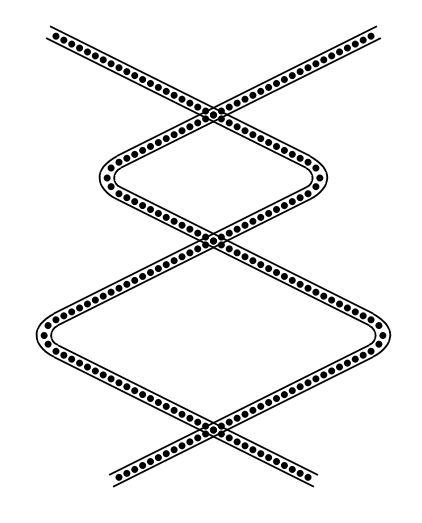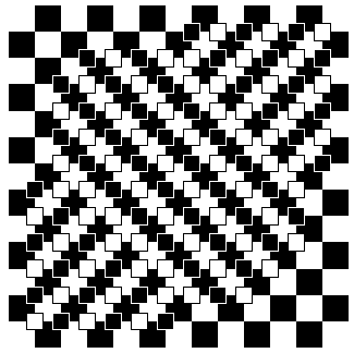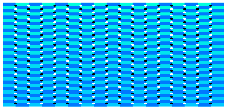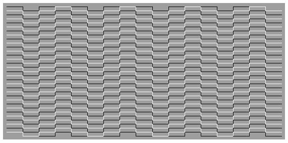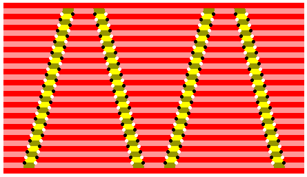 Rows are parallel but appear to tilt clockwise (top, center, bottom) or counterclockwise (the rest two), which is the Zöllner illusion. Moreover, anomalous motion illusion is observed, too.