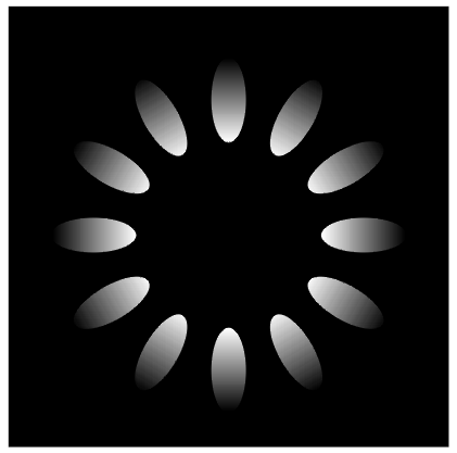When the ellipses are rotated through 90 deg, the rings made up of the ellipses appear to rotate slowly. The ring appears to rotate clockwise (left). The ring appears to rotate counterclockwise (right).