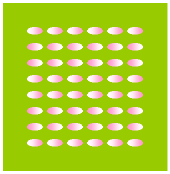 2. The central drift illusion is strong when the luminance gradient is drawn along the longer axis of inducers while the peripheral drift illusion is strong when the gradient is along the shorter axis, e.g. "Eggs".