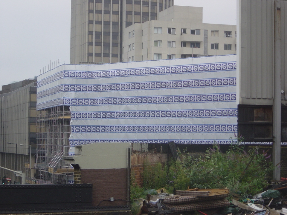 The other conference was the ECVPiEuropean Conference on Visual Perception 2002j held in Glasgow, Scotland. I took trains for transportation, from which I saw the Fraser illusion in the curtain of a building near the London Bridge station.