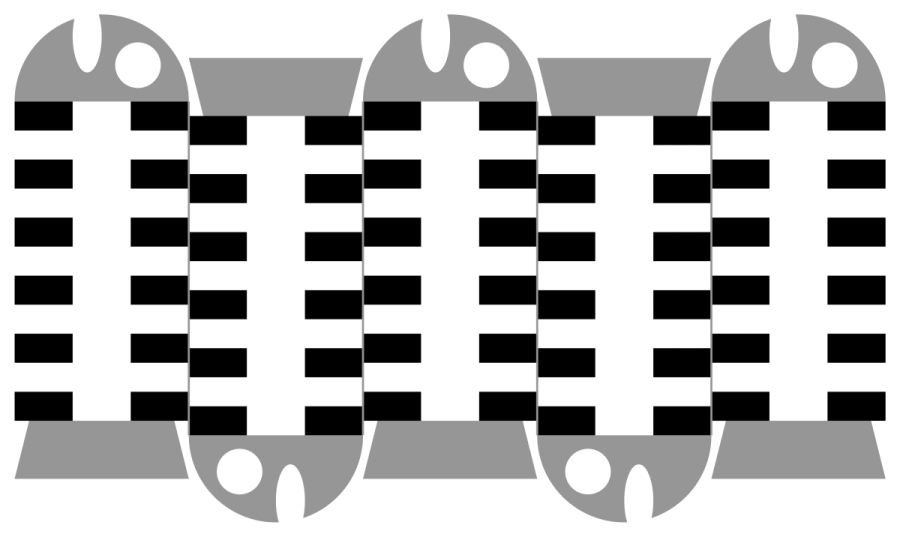 Vertically and horizontally aligned gray lines appear to bulge out.