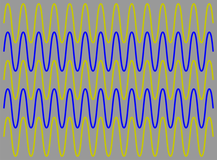 The white background behind the gray waves appears to be darker than the rest. This effect was discovered by Seiyu Sohmiya in 2006 (personal