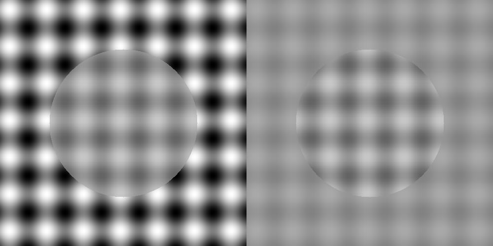 Low-spatial-frequency parts tend to appear to be transparent in front.