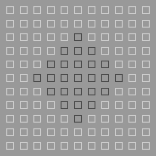 The regions surrounded by light borders appear to be lighter than they are while those surrounded by dark borders appear to be darker than they are.