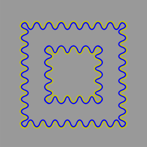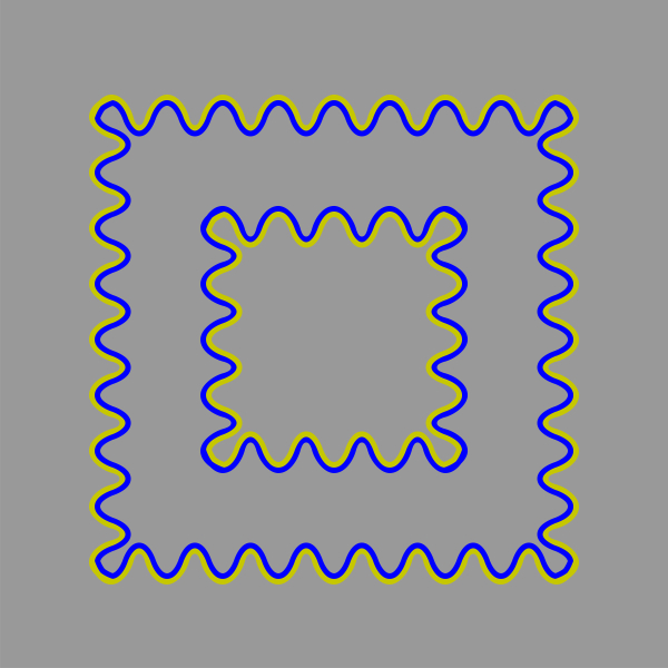 Akiyoshi's comments: It resembles but is different from the Craik-O'Brien-Cornsweet effect and the watercolor effect. Although Noguchi and Takashima did not claim this effect a new one, I felt that this is quite new, so I persuaded them to give permission to show it in my webpage as a new effect. It should also be noted that the enhancement of brightness induction or filling-in given by the wavy configuration is the invention of Professor Baingio Pinna. Dr. Midori Takashima is a young perceptionist, who was a student of Professor Kaoru Noguchi.
