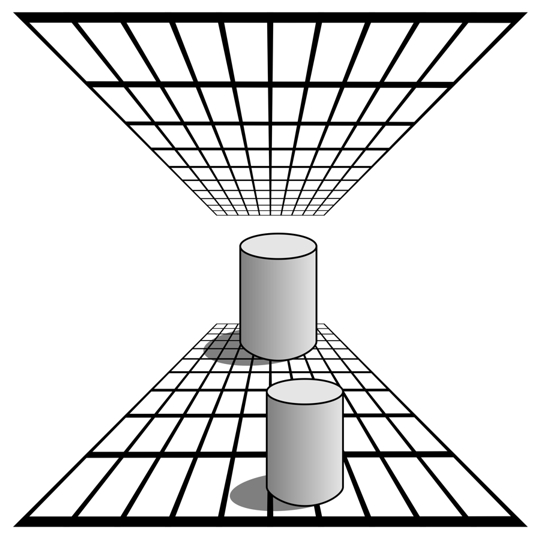 The distortion is reversed if perspective patterns are given to the ceiling and floor.