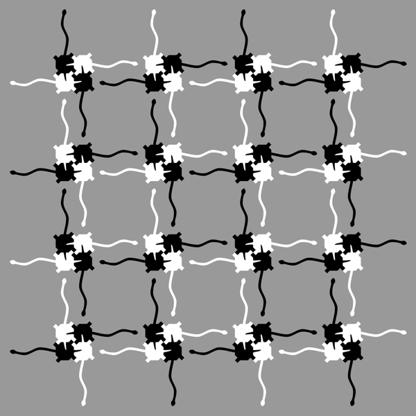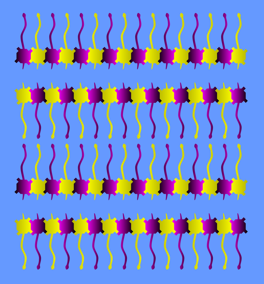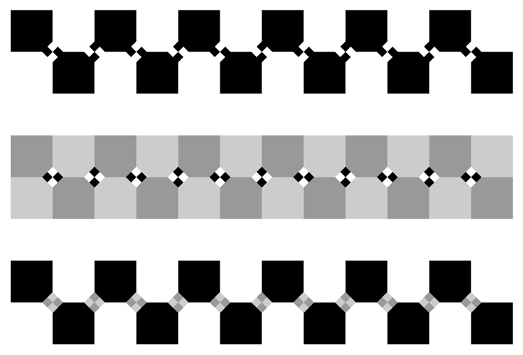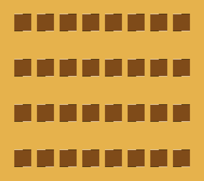 Horizontal rows appear to tilt alternately (illusion of fringed edges) and move horrizontally (optimized Fraser-Wilcox illusion Type I).