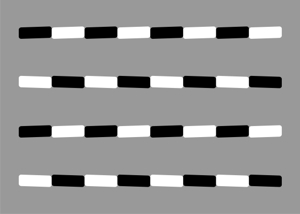 Horizontal rows of black and white stripes appear to tilt alternately. The uppermost row appears to tilt clockwise.