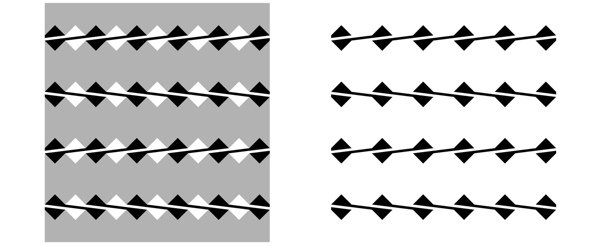 The left block of gray squares appear to tilt clockwise whereas the right
