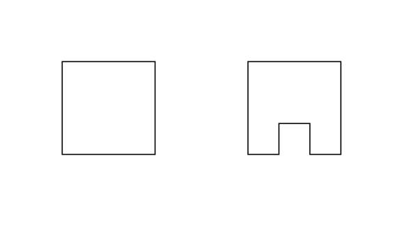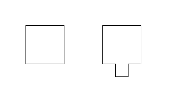 A square appears to be distorted toward an attached small square.