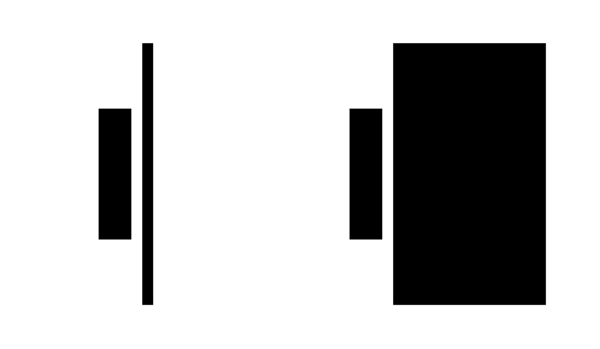 The left rectangle close to a thin bar appear to be taller and thinner than the right one close to a large rectangle, though they are the same shape and size.