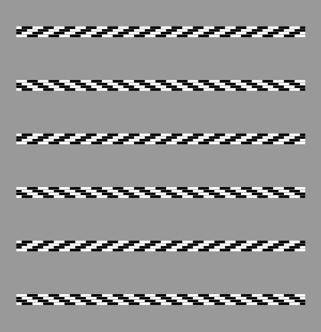 Each row appears to tilt alternately (the uppermost one counterclockwise), though they are horizontally aligned. Each row appears to move slightly.