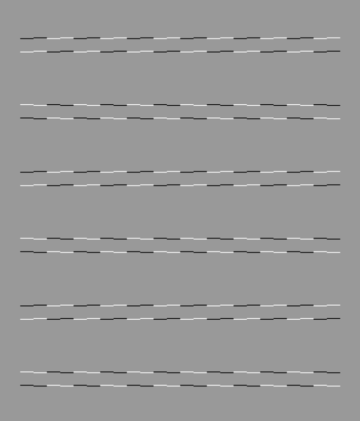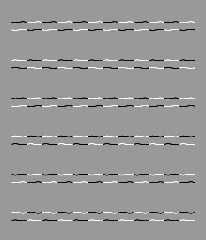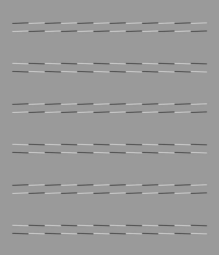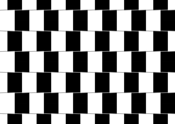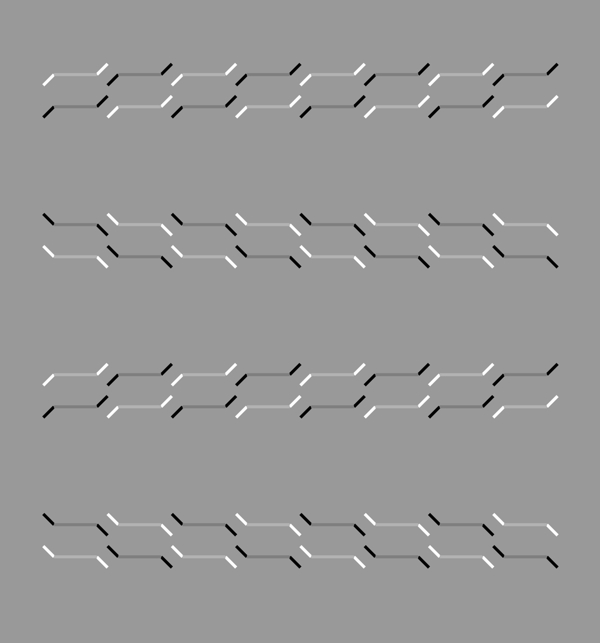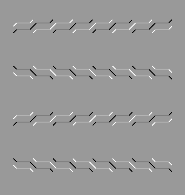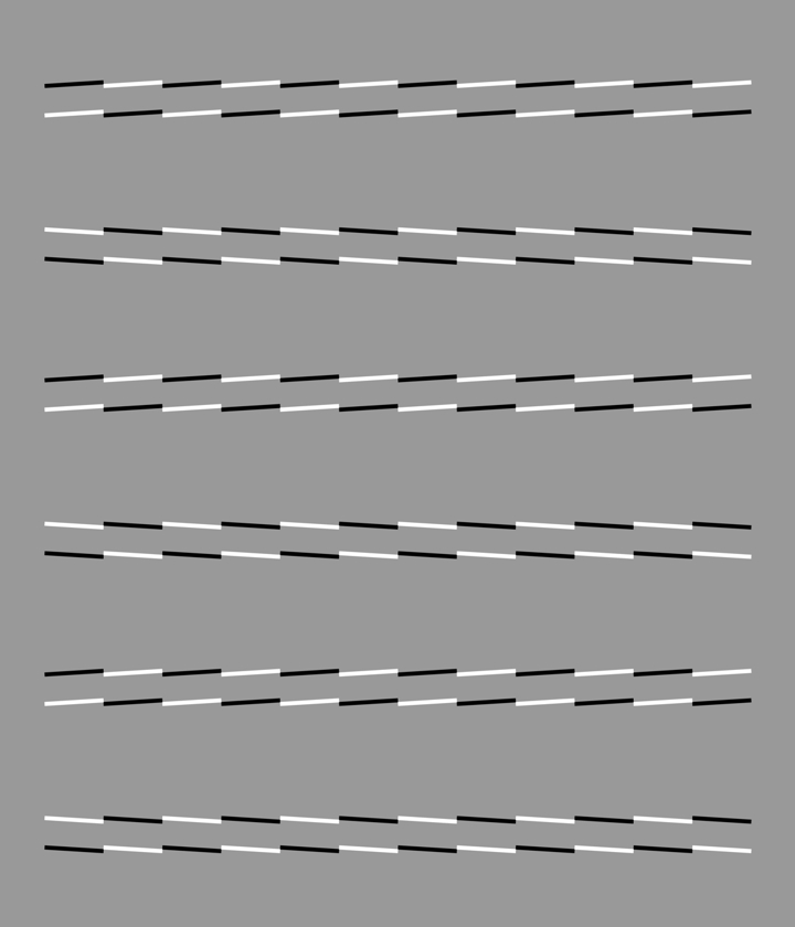 Horizontally aligned rows of oblique gray line segments appear to tilt alternately. The uppermost, third and fifth blocks appear to tilt counterclockwise whereas the rest clockwise.