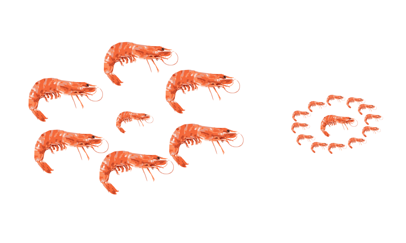 The shrimp surrounded by smaller ones in the right group appears to be larger than the shrimp surrounded by larger ones in the left group, though they are the same size.