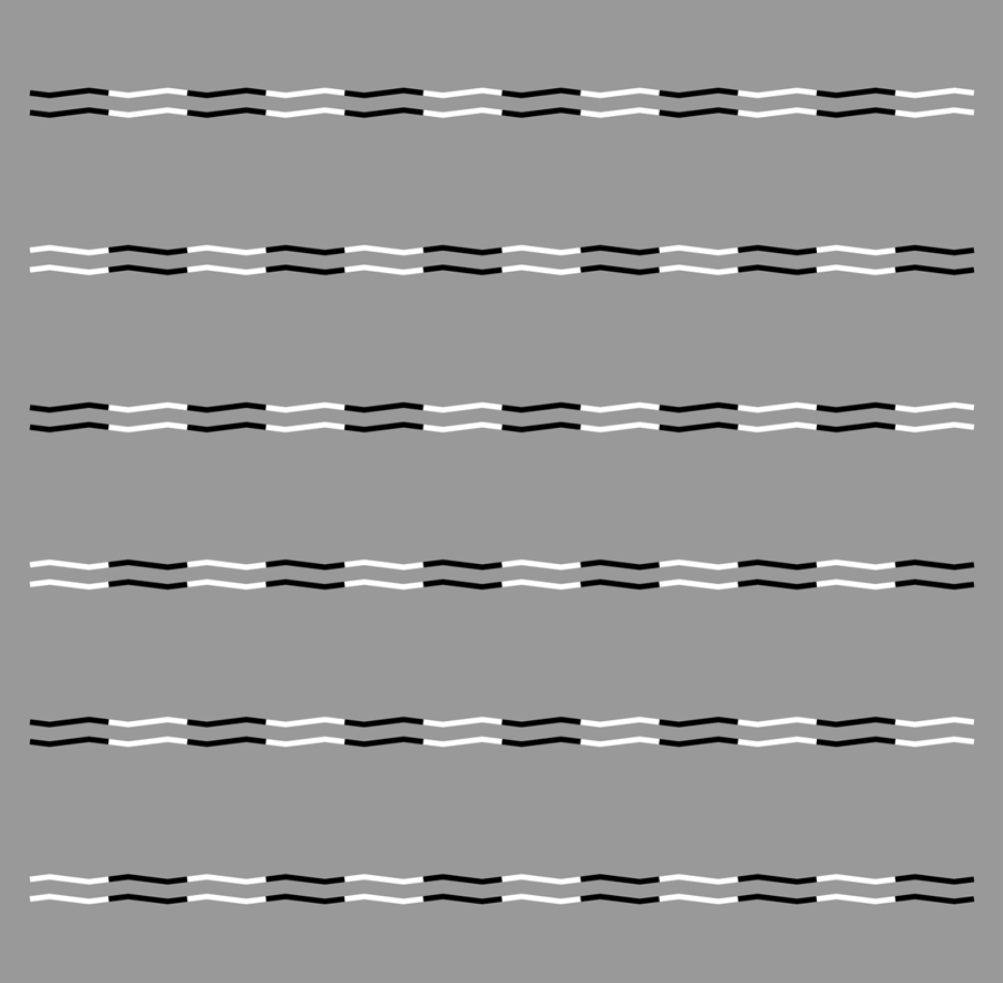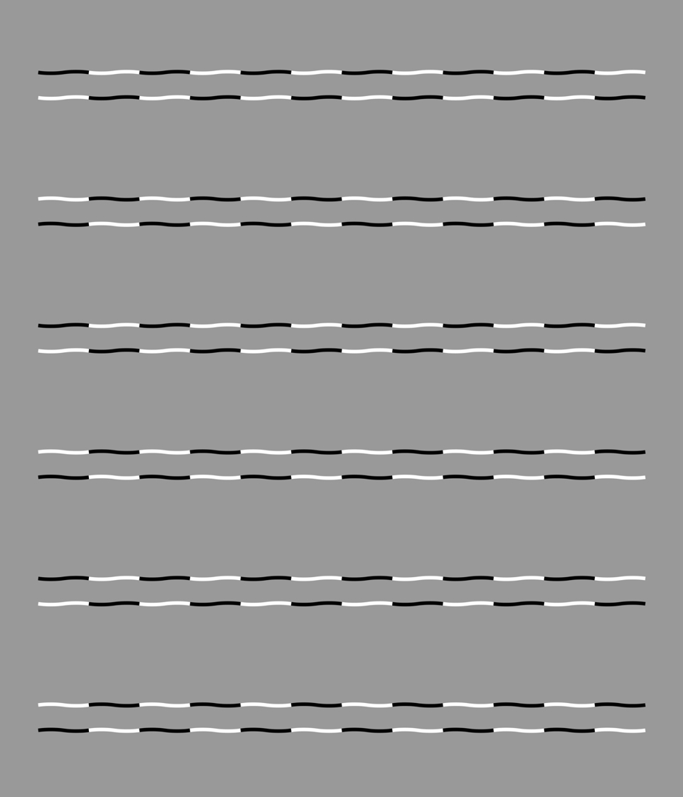 Horizontally aligned rows appear to tilt alternately. The uppermost and third rows appear to tilt counterclockwise whereas the rest clockwise.