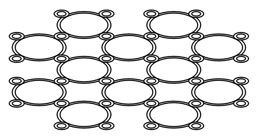 Each small ellipse is horizontally oriented but appears to tilt toward the neighboring large ellipses.