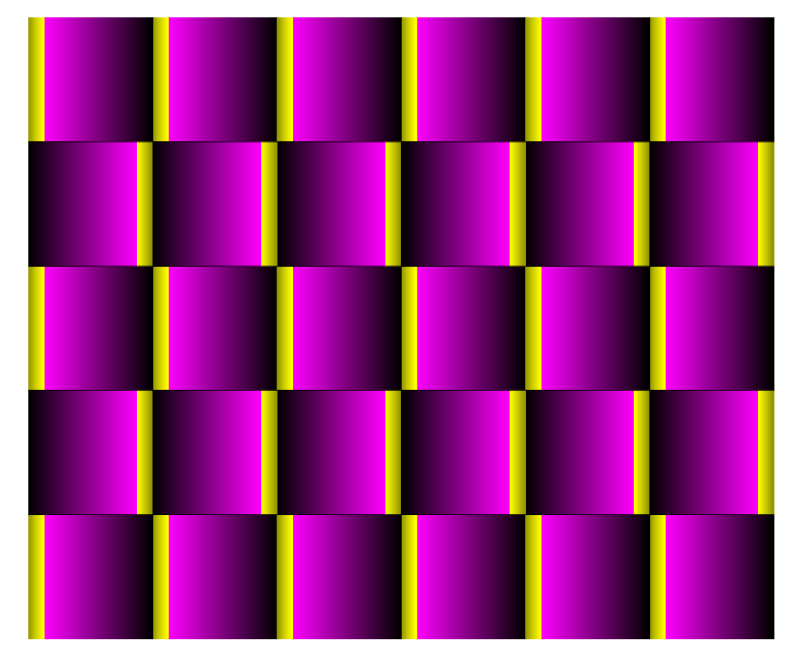 Each ray is a square but appears to be distorted by the illusion of shifted gradations (Kitaoka, 1998). In addition, the eyes of the darker rays appear to be lighter than those of the lighter rays, but they are identical in luminance gradient. Moreover, some parts of the vertical or horizontal lines appear to be lighter or darker than other parts (Logvinenko illusion?).