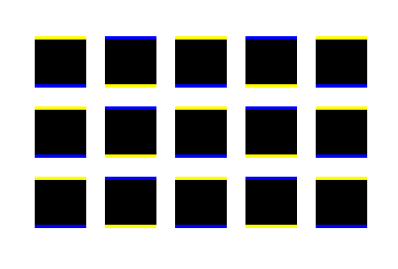 In each row black faces are actually aligned horizontally but the second and the fourth ones appear to be located upper than the others. Moreover, the second and fourth ones appear to move upward.