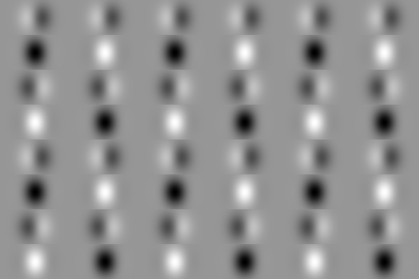 'Eyes' are aligned vertically but the columns appear to tilt clockwise or counterclockwise alternately.