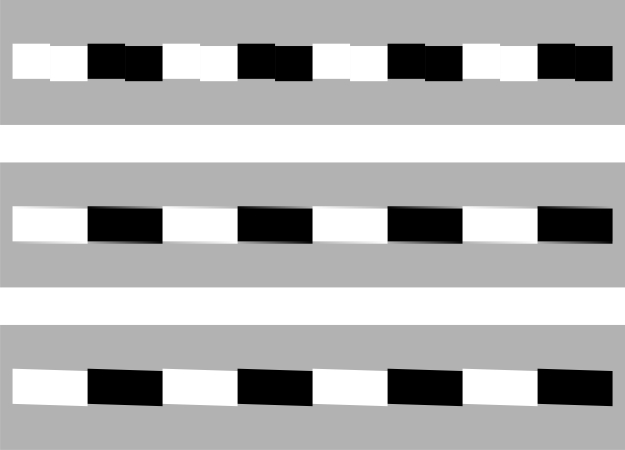 Vertical or horizontal edges appear to tilt though it consists of only squares that are aligned vertically or horizontally.