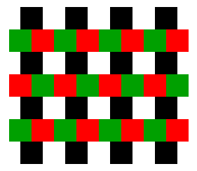 Although red squares and green ones are aligned, they sometimes appear to be misaligned. The direction of misalignment can be reversed by seeing the figure through the periphery of glasses if you wear them.