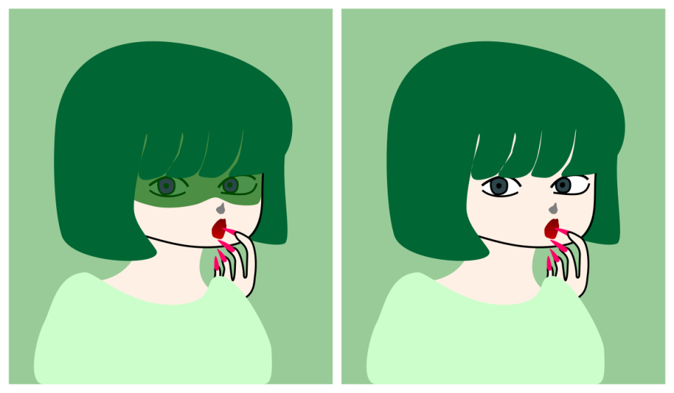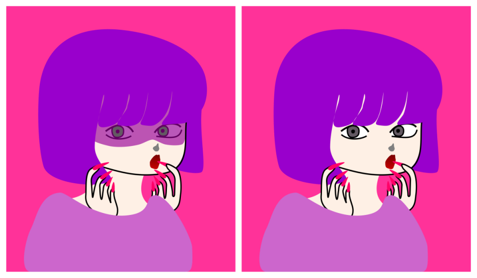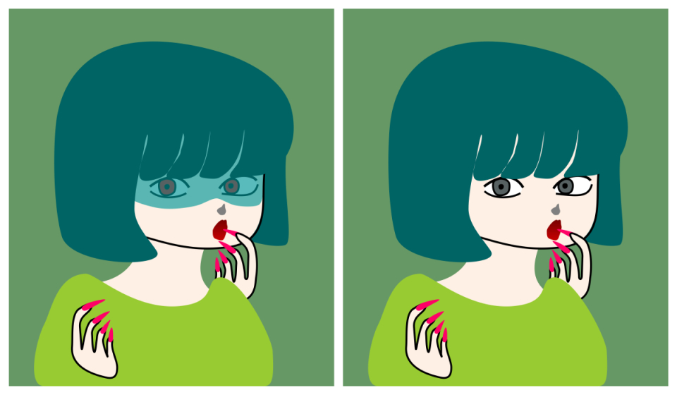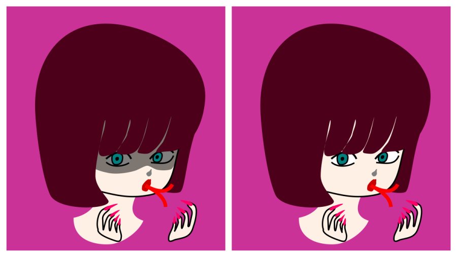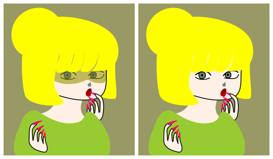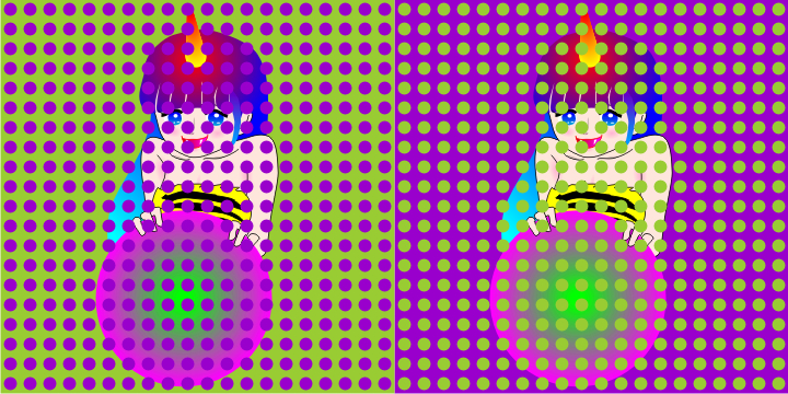 The left girl appears to be reddish while the right one yellowish, though they are identical in color. This illusion is the "dotted color" illusion.