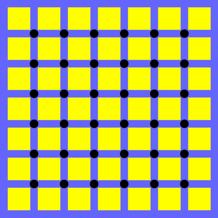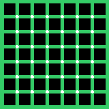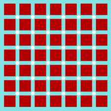 Chromatic variations of the Hermann grid illusion are displayed.